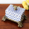 小物入れ 陶器 ふた付き シノワズリ アンティーク おしゃれ 脚付き 鳥 卓上収納 バラ 真鍮装飾 金古美 高級感 エレガント 置物 オブジェ シノワズリ 陶器の小物入れ 網目バード 【送料無料】 [ebn9154]