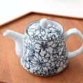 ティーポット 波佐見焼 日本製 磁器 ボタニカル 花柄 おしゃれ かわいい 北欧 紅茶 ハーブティー 430ml 茶こし付き 食洗機対応 電子レンジ対応 アートフラワーのポット [msg5644]