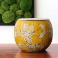 植木鉢 陶器 おしゃれ 和風 丸型 梅柄 鉢カバー 穴なし 水鉢 メダカ鉢 金魚鉢 ビオトープ 観葉植物 和モダン シノワズリ 手火鉢 陶器のミニ火鉢 黄梅 [swa3156]
