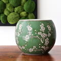 植木鉢 陶器 おしゃれ 和風 丸型 梅柄 鉢カバー 穴なし 水鉢 メダカ鉢 金魚鉢 ビオトープ 観葉植物 和モダン シノワズリ 手火鉢 陶器のミニ火鉢 緑梅 [swa3157]