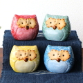 ふくろう 置物 陶器 小さい ミニ オブジェ カラフル 雑貨 おしゃれ 可愛い インテリア 卓上 玄関 風水 開運 オーナメント 縁起物 陶器のいろどり梟 4個セット [swa3809]