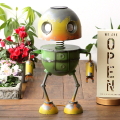 ロボット 置物 ガーデン オーナメント シャビー アンティーク オブジェ インテリア 雑貨 玄関 園芸 ディスプレイ アイアン 光る 可愛い 揺れる ダンス ソーラーライト付き ロボットの置物 B 【送料無料】 [toy2333]