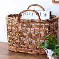 バスケット ラタン 収納 かご おしゃれ 持ち手 取っ手付き 編み籠 スリッパラック マガジンラック ナチュラル 天然素材 かごバッグ 40cm アラログ ループ編みバスケット [cle6545]