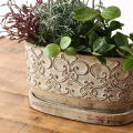 植木鉢 プランター 陶器 オーバル 楕円 アンティーク おしゃれ レリーフ 寄せ植え 多肉植物 花鉢 花器 底穴あり ヨーロピアン クラシック レトロな陶器のプランターポット クロシェット [cov5225]