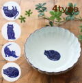 小鉢 とんすい 波佐見焼 日本製 磁器 14cm 猫柄 呉須 和風 菊割皿 鍋 取り皿 煮物鉢 深鉢 おしゃれ かわいい 和食器 来客用 ねこ菊割丸小鉢 4タイプ [msg4464]