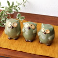 ふくろう 置物 陶器 小さい オブジェ 雑貨 おしゃれ 可愛い インテリア 卓上 玄関 風水 開運 オーナメント 縁起物 陶器の梟 3個セット [swa3808]