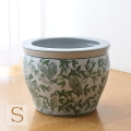 植木鉢 陶器 おしゃれ 和風 丸型 梅柄 鉢カバー 穴なし 水鉢 メダカ鉢 金魚鉢 ビオトープ 観葉植物 和モダン シノワズリ 手火鉢 陶器のミニ火鉢 緑梅 [swa3157]