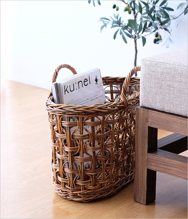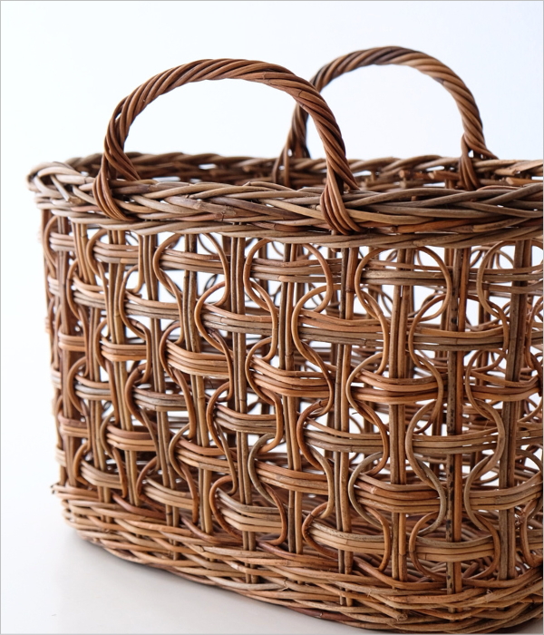皮付きラタンのバスケットは