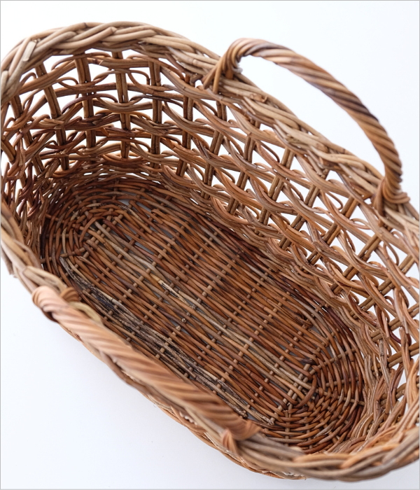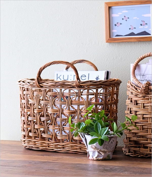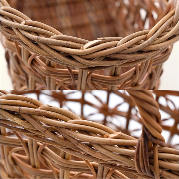 材質 皮付きラタン(アラログ) 重量(g) 315 生産国 インドネシア ※独特なアンティークな風合いを楽しむために表皮をそのまま残して編んでおりますので、表皮の剥がれ・色ムラ・黒い斑点・ささくれ・つるの折れがみられる場合がございます。 ひとつひとつ手作りの商品となりますので、 若干の色や形の違い・個体差は予めご了承下さい。 ※直射日光や水濡れは、色あせやカビ等の原因となります 備考 ・北海道・沖縄・離島の送料は別途お問い合わせ下さい ・ディスプレイによる色の違いは予めご了承下さい ・手作り品の為僅かな寸法違いは予めご了承下さい |