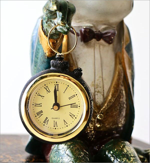 バロックなカエルのクロックを持ったオブジェ