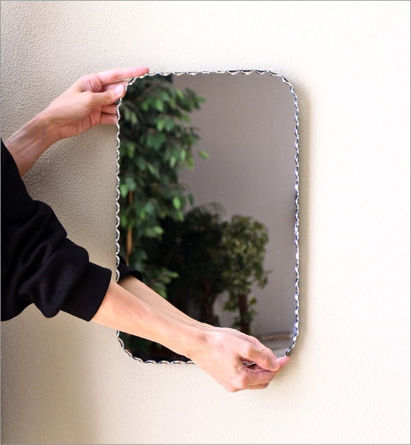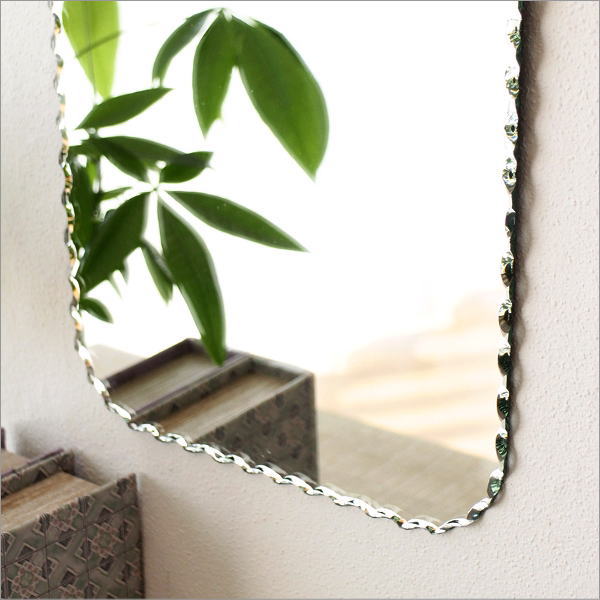 カッティングの縁取りが美しいウォールミラーは