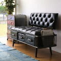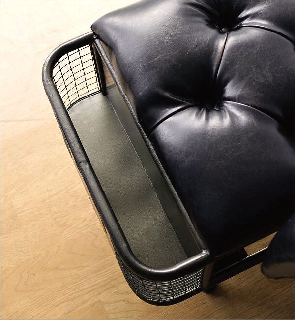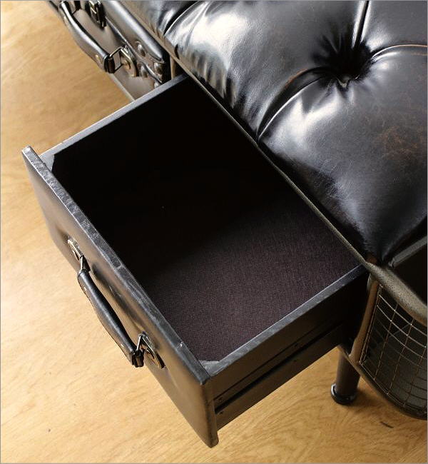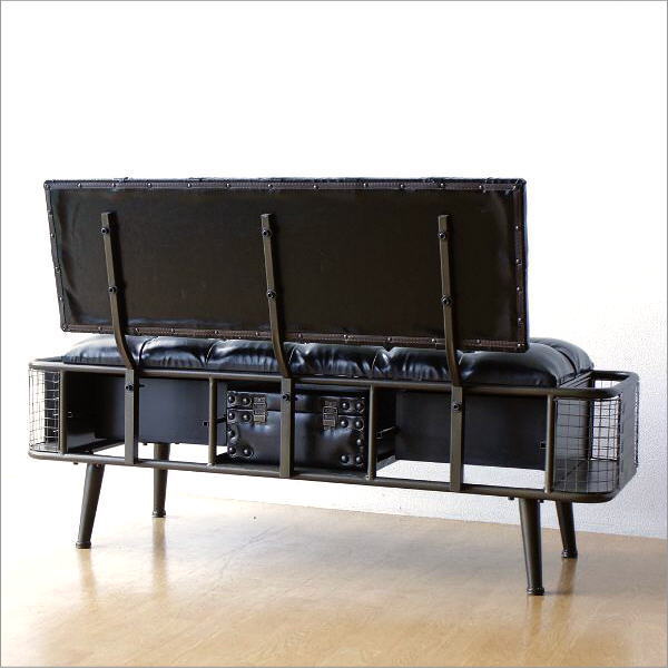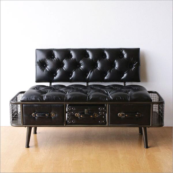 アイアンとフェイクレザーのベンチ