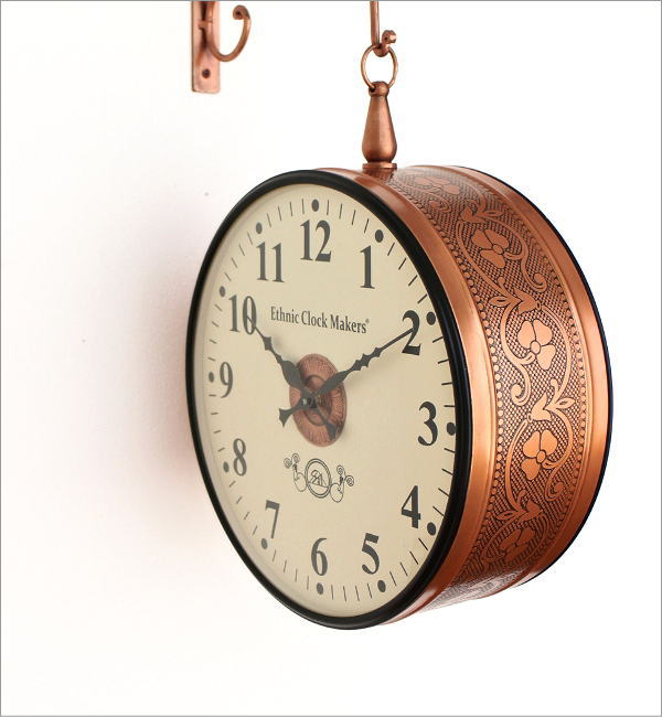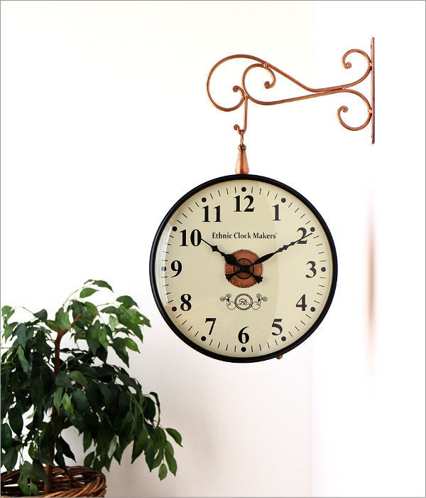 両面で見えるアンティーク調の掛け時計