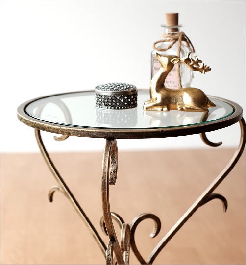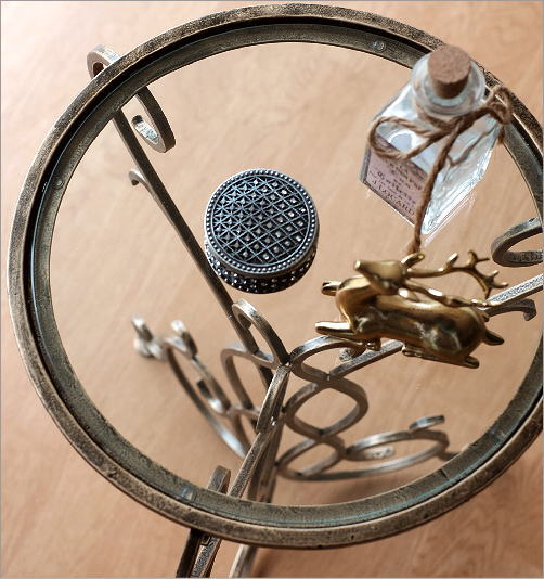 アイアンとガラスのアクセントテーブル