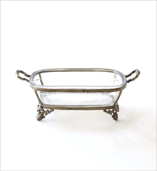 ハンドル付きのガラスの小物入れ
