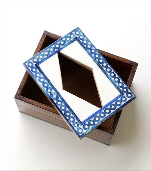 加工されたボーンをあしらったティッシュBOXは