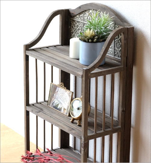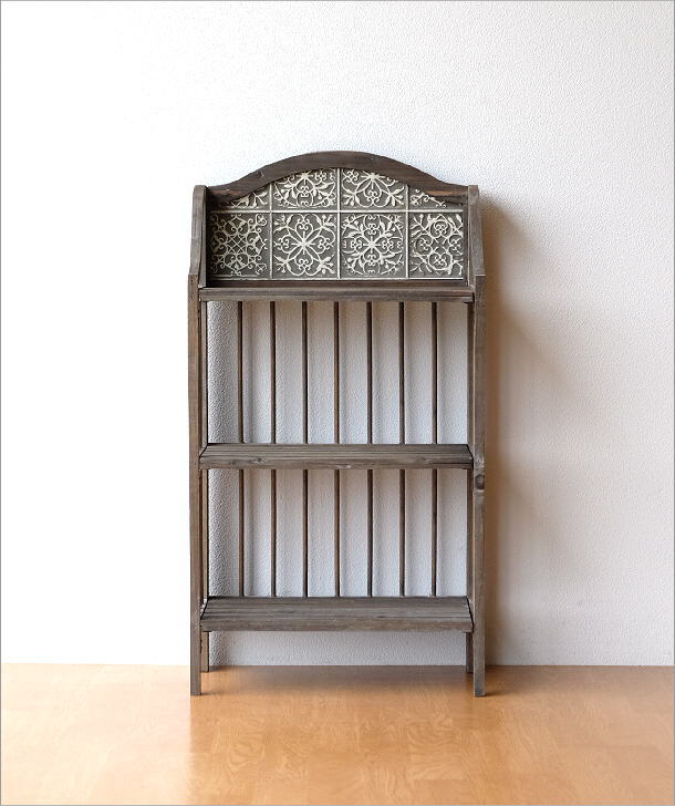 商品名 シャビーウッドの折り畳み3段棚 商品番号 hbr0455 サイズ(表記はcmです)