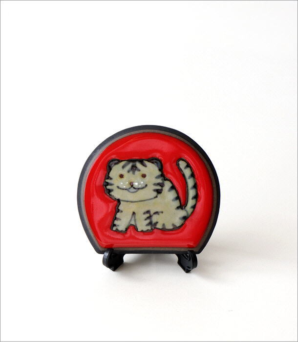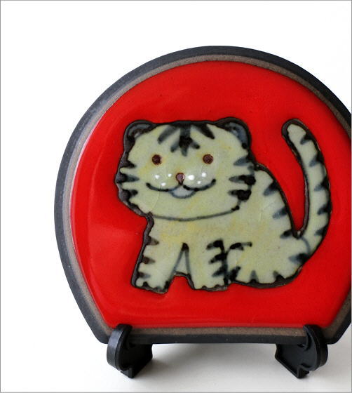 可愛い寅の絵を描いた幅9cmの小さなプレート