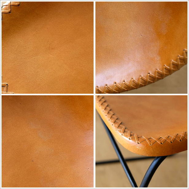 手作り感のあるワイルドなイメージのレトロな本革のスツール