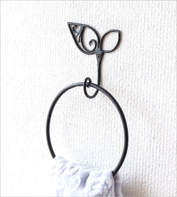 シンプルで素朴なラウンド(丸型)のアイアンタオルハンガーです
