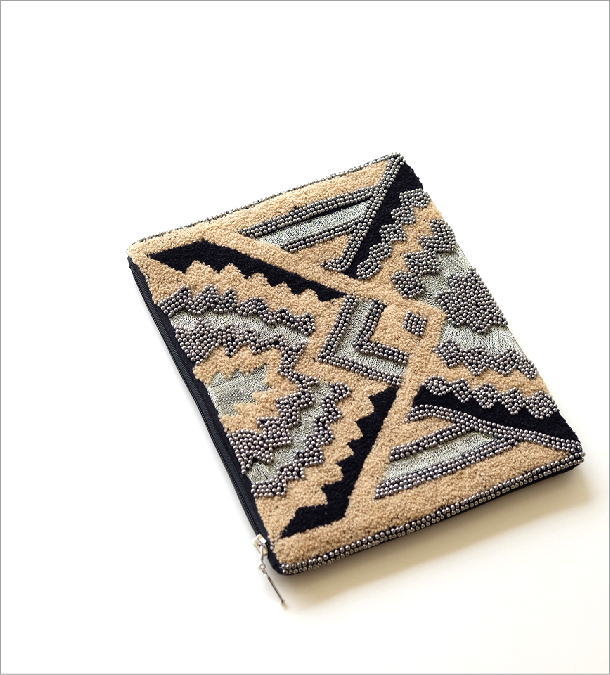 商品名 ビーズ刺繍フラットポーチ L 商品番号 kan1455 サイズ(表記はcmです)