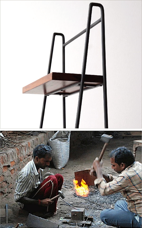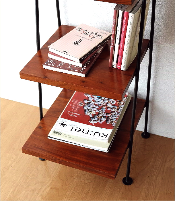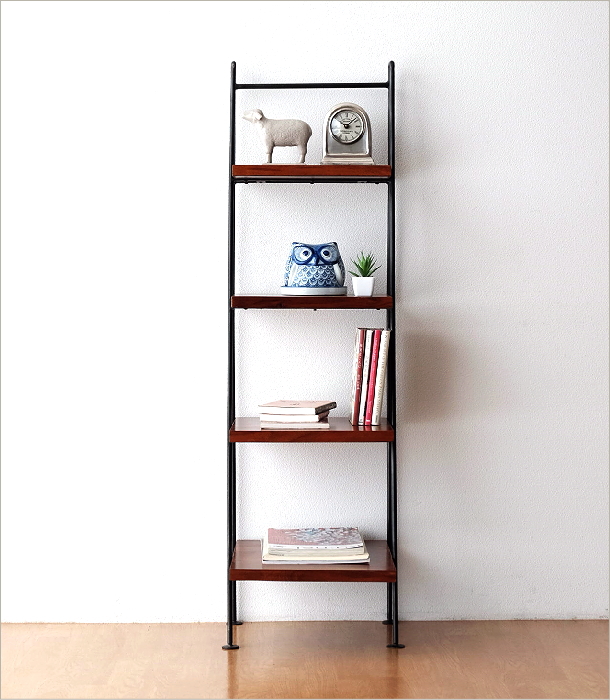 アカシアウッドとアイアンのはしご4段風飾り棚