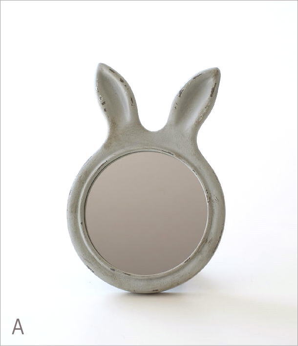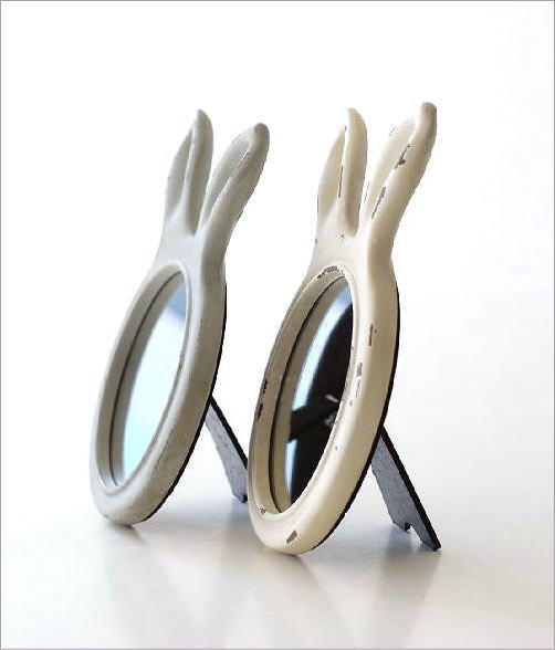 うさぎの形の小さなスタンドミラー