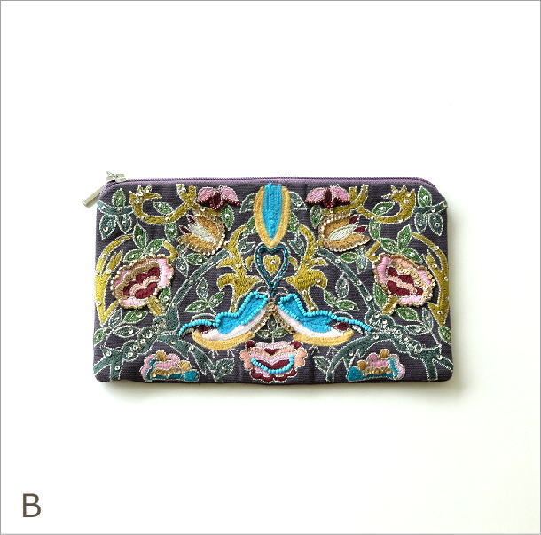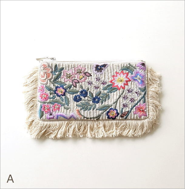 商品名 ビーズ刺繍 横長ポーチ 2タイプ 商品番号 kan3154 サイズ(表記はcmです) 【グレー】