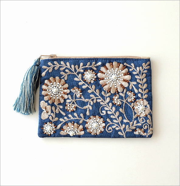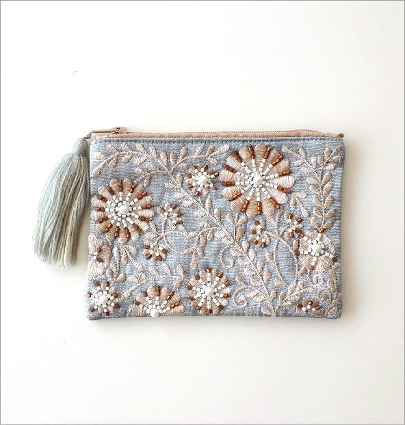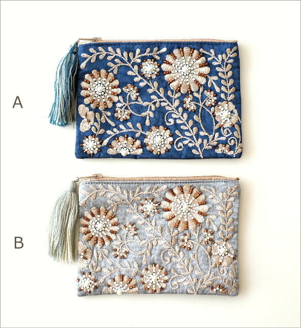 商品名 ビーズ刺繍スクエアフラットポーチ 2カラー 商品番号 kan3859 サイズ(表記はcmです)