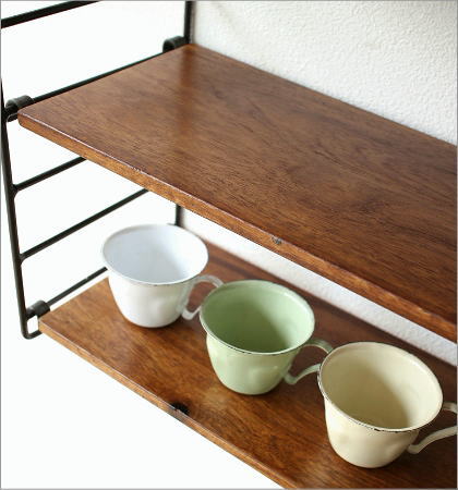 棚の高さを変えられる、天然木とアイアンのウォールシェルフ