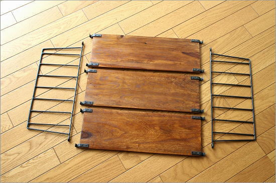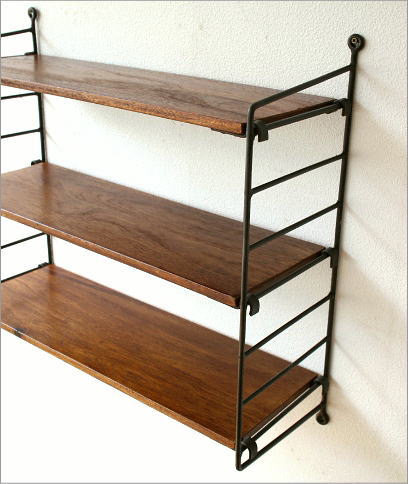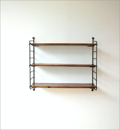 インドから届いた シーシャムウッドとアイアンの壁掛け三段棚
