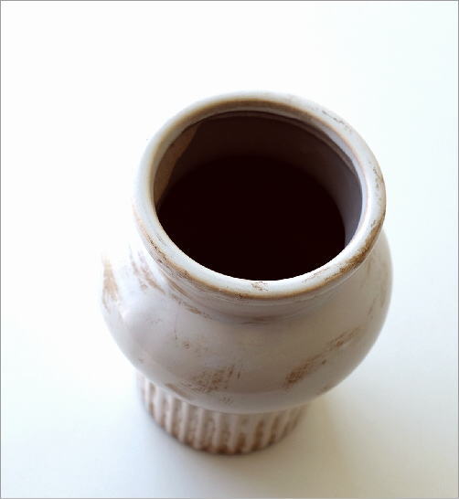 ベージュカラーの花器は