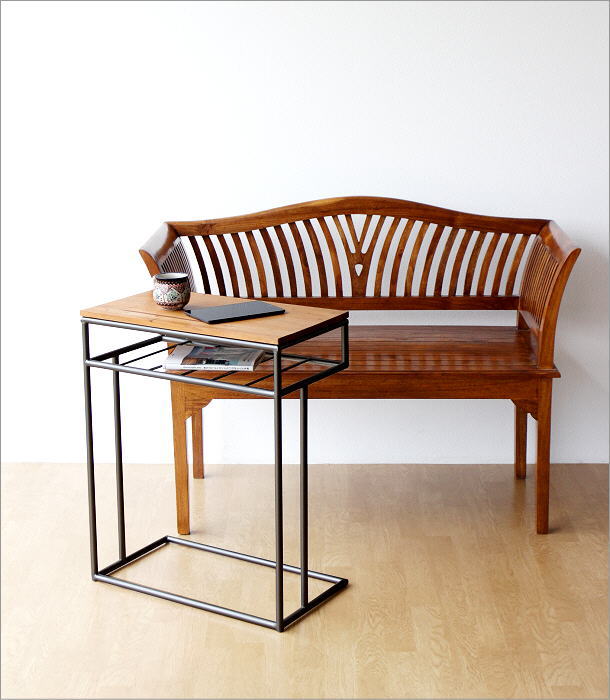 アイアンとマホガニーウッドのサイドテーブル