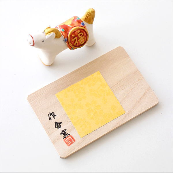 金色の紙を小さく張った白木の台に