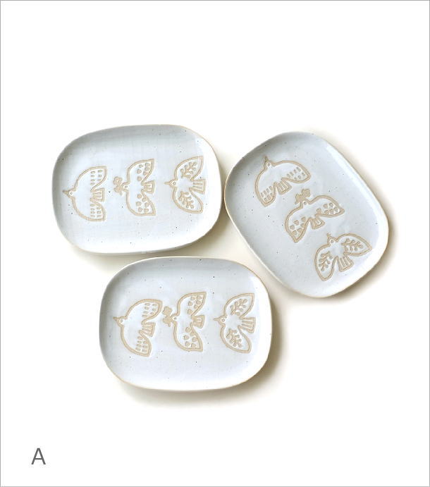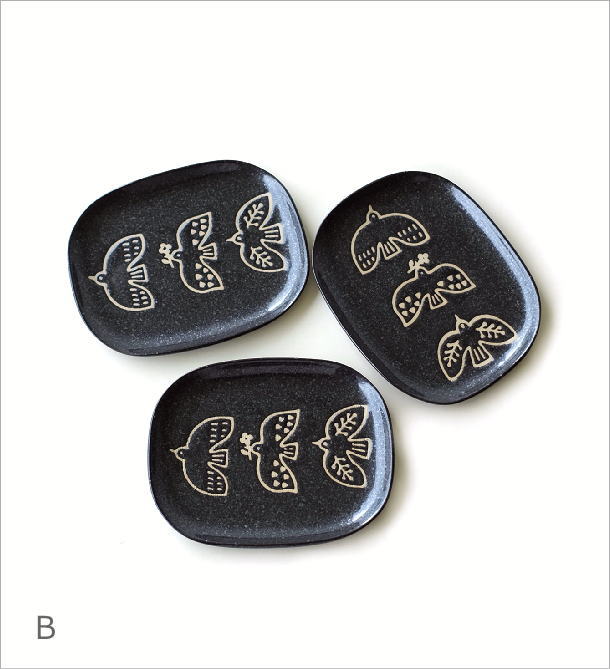 商品名 プレート中皿 3枚セット バード 2カラー 商品番号 ksn7633 サイズ(表記はcmです)