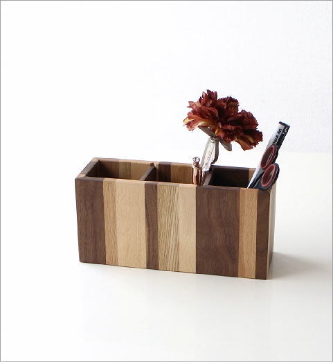 ナチュラル ウッドのモザイクペンたて(仕切りが1つのタイプ)