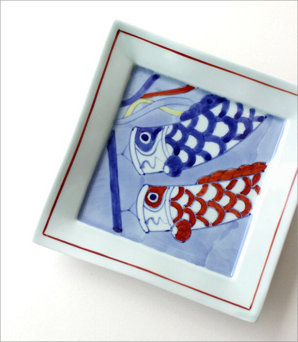 のびのびと泳ぐ鯉のぼりの絵皿