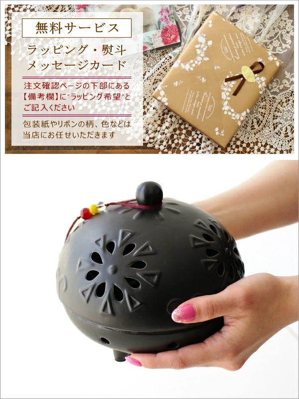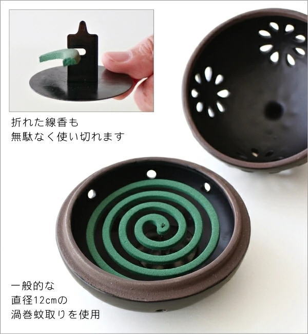材質 陶器 重量(g) 680 生産国 中国 ※直径12cmまでの渦巻蚊取り線香に対応 (お手元の線香サイズをお確かめの上、ご検討ください) ※金具に蚊取り線香を付けてご使用ください ※蚊取り線香は付いていません 備考 ・北海道・沖縄・離島の送料は別途お問い合わせ下さい ・ディスプレイによる色の違いは予めご了承下さい ・手作り品の為僅かな寸法違いは予めご了承下さい |