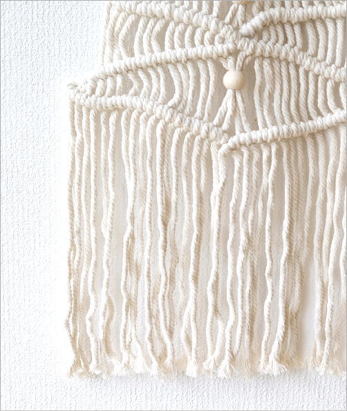 コットンロープをマクラメ編みで編み上げた