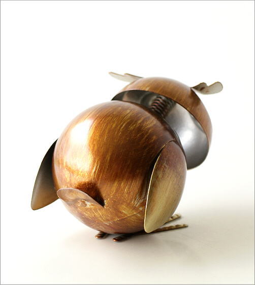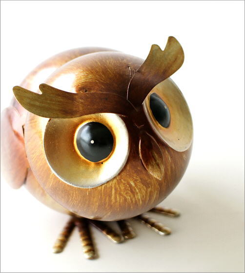 触ると顔がゆらゆら揺れるアイアンフクロウ