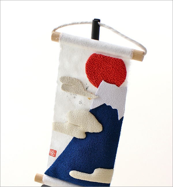 昇る朝日をちりめん生地で表現した
