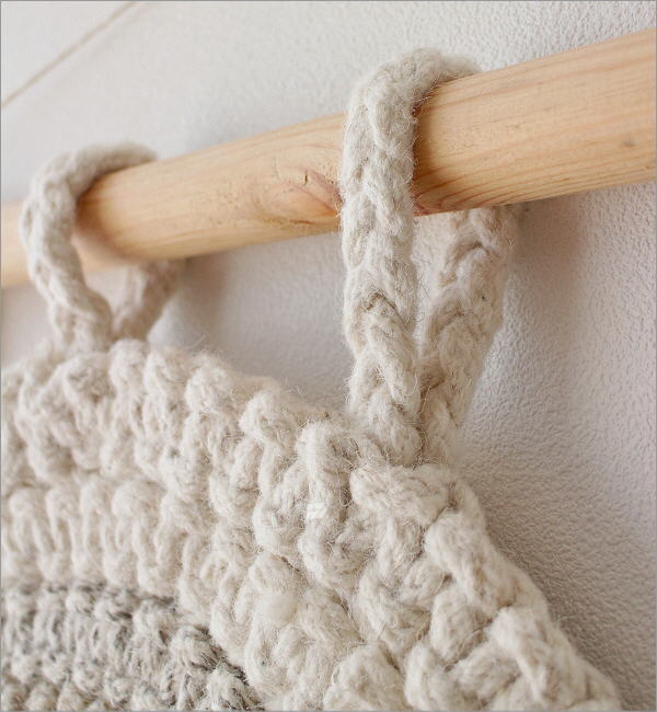 太いウールの糸でざっくりと編み上げた