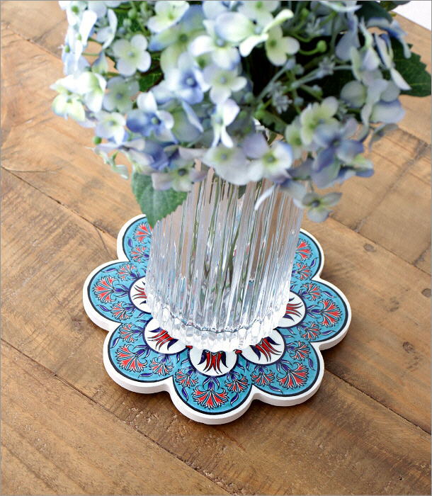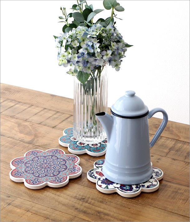 絵付けが可愛いトルコのタイル鍋敷き