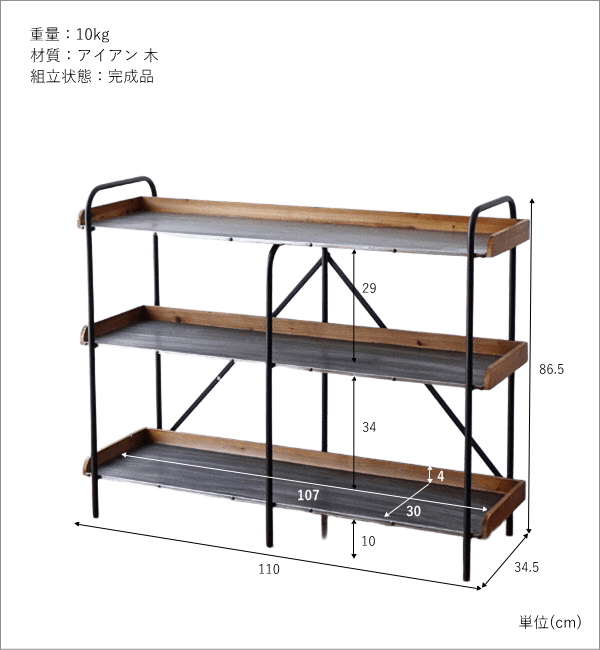 商品名 アイアンとウッドのトレイシェルフ3段 商品番号 scc9309 サイズ(表記はcmです)