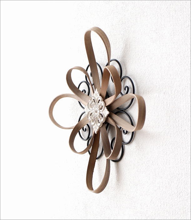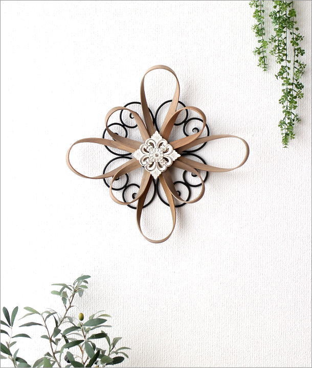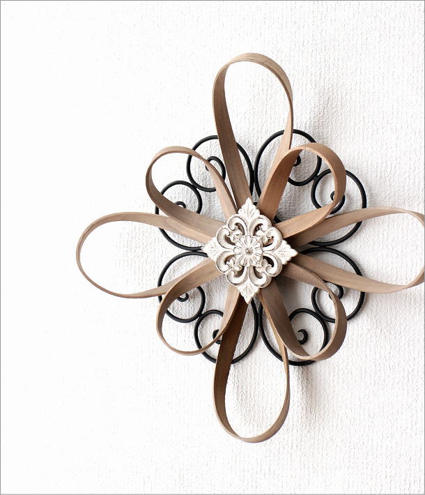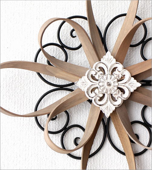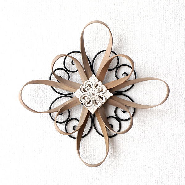アイアンとウッドのフラワーデザインの壁飾り
