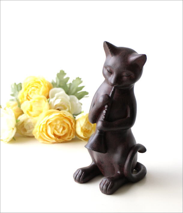 クラリネットを奏でるネコのオブジェ