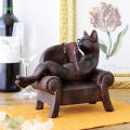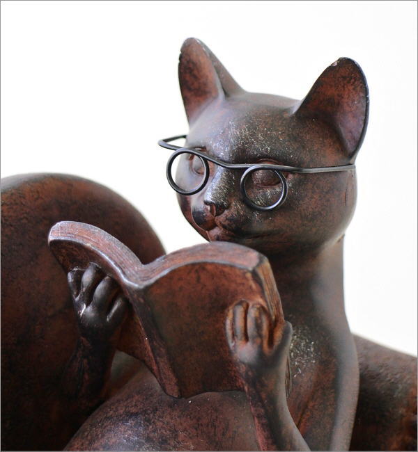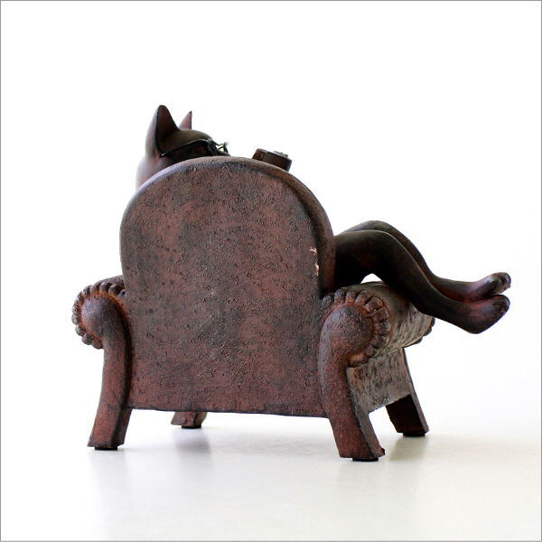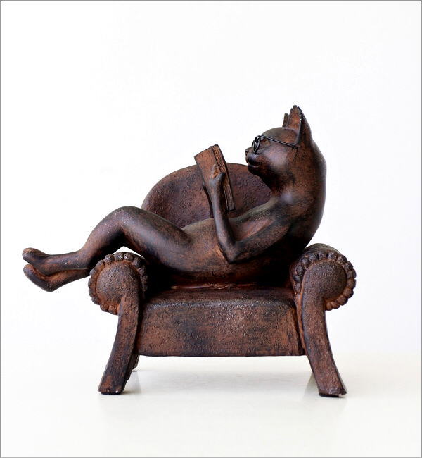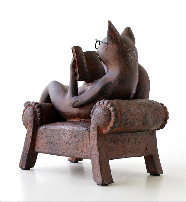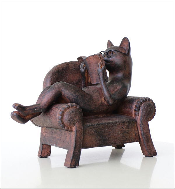 ソファーで優雅に読書中のネコのオブジェ