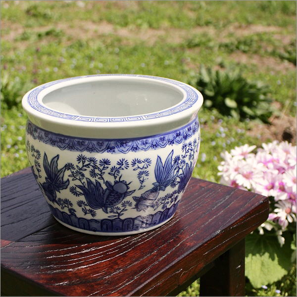 商品名 陶器の金魚鉢 青花 商品番号 swa6008 サイズ(表記はcmです)