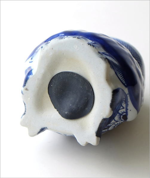 藍色の陶器の貯金箱です