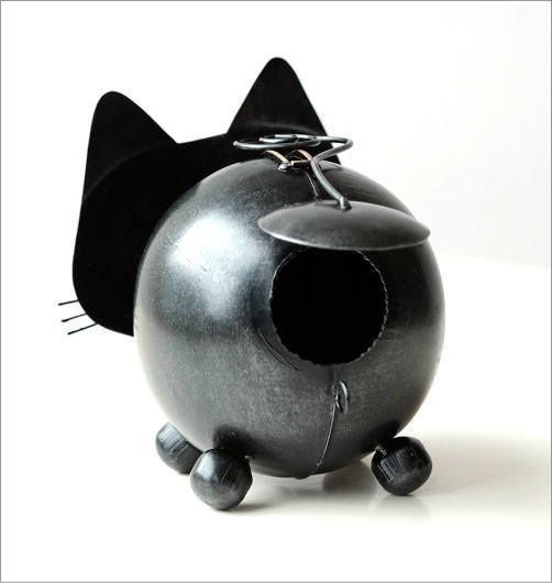 ブリキのクロネコ貯金箱